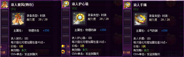 8、老玩家在版本更新之后将直接获得“时装礼箱”(通过邮件发放),开启礼箱后获得浪人披风、浪人护心镜、浪人手镯,新玩家可以通过完成——四星斗者任务获得。